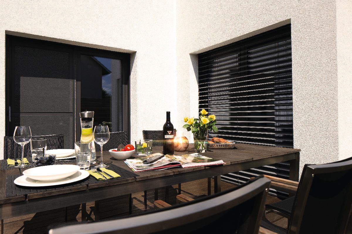 - Speziell für Neubauten und Sanierungen entwickelt, bei denen die Außenjalousie unauffällig in die Fassade integriert wird